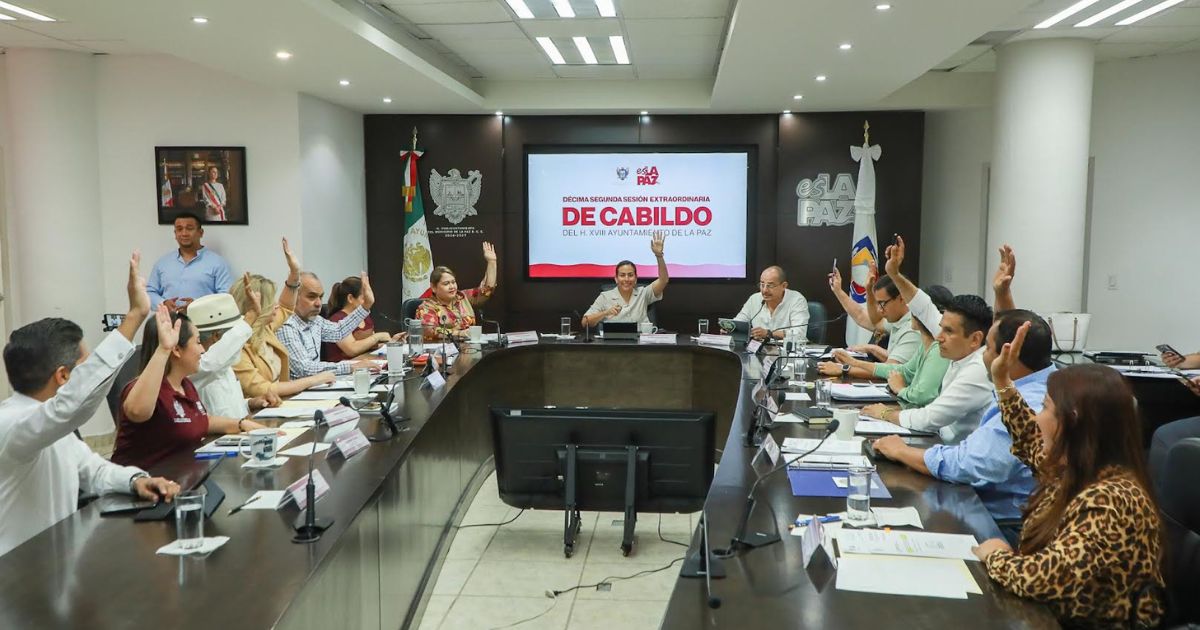 La Paz, Baja California Sur.- Durante la Décima Segunda Sesión Extraordinaria de Cabildo del XVIII Ayuntamiento de La Paz, se aprobó la desafectación de terrenos ubicados en Todos Santos, El Pescadero y la colonia Calafia, con el fin de destinarlos al Programa de Vivienda para el Bienestar.
