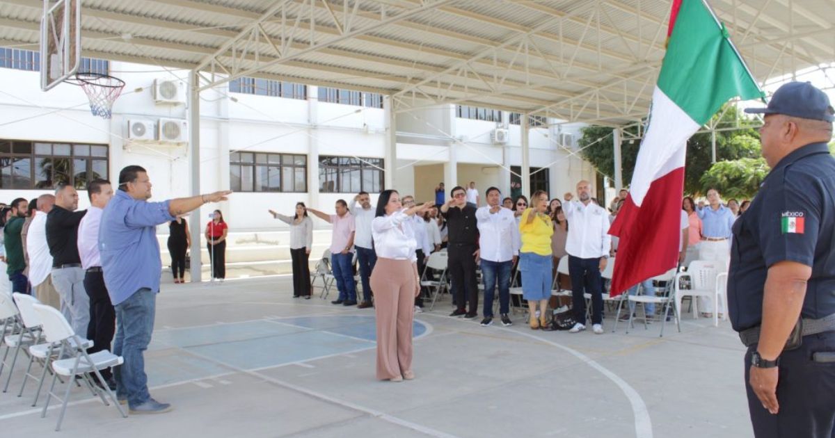 Los Cabos, Baja California Sur. – La Coordinación Delegacional de Asuntos Jurídicos, Legislativos y Reglamentarios encabezó la ceremonia de honores a la bandera en la Delegación Municipal de Cabo San Lucas, ubicada en la colonia Brisas del Pacífico. En representación de la delegada municipal, Karina de la O Uribe, participó el coordinador de la Secretaría General, Víctor Hugo Castro Martínez.