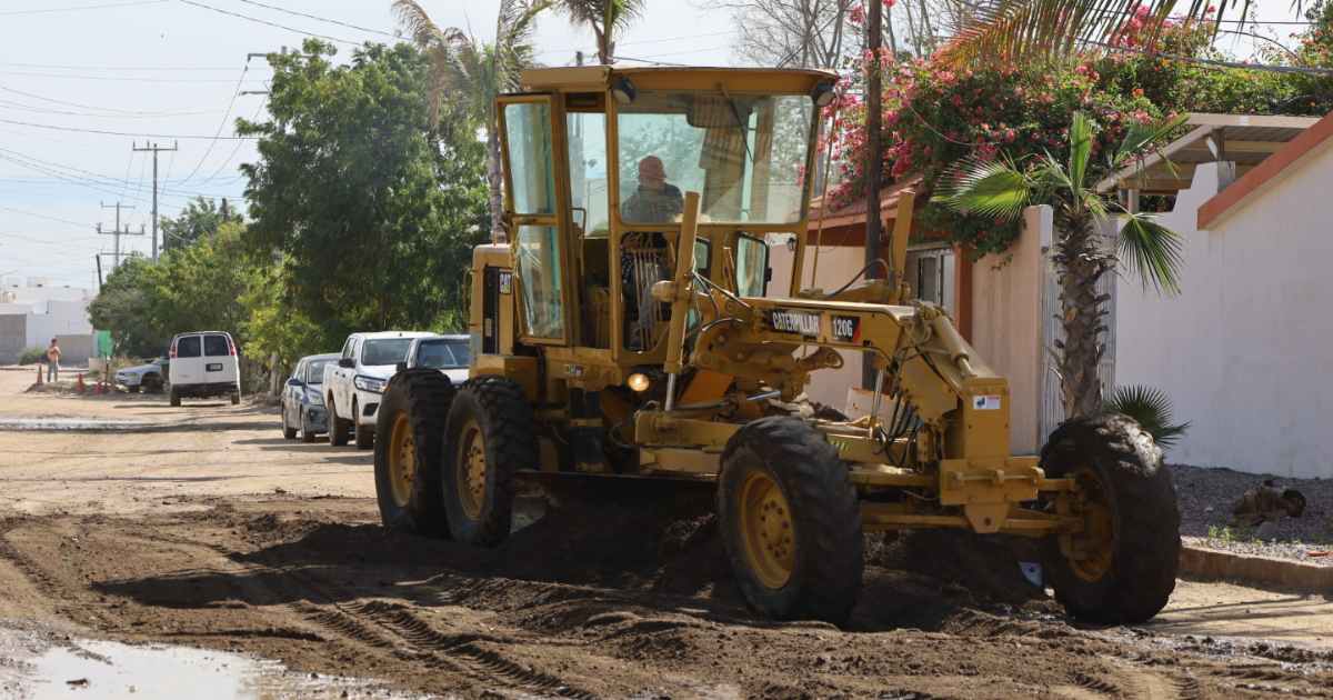 En ese sentido, estas acciones se ejecutan a través de la Dirección General de Gestión Integral de la Ciudad, en coordinación con la Dirección de Obras Públicas de La Paz, consistiendo en relleno y nivelación de las calles más afectadas, principalmente en accesos que conectan con la carretera Transpeninsular.