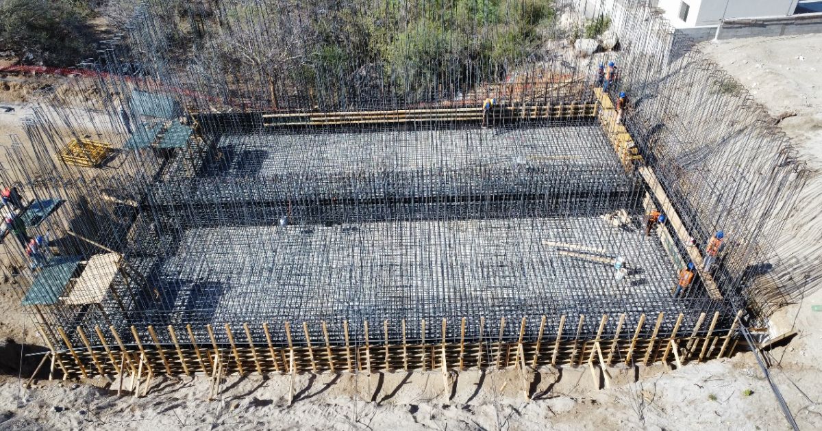 En la Estación de Bombeo 1, se trabaja en la colocación de varilla para preparar el colado de bases; en la Estación de Bombeo 2, se completó el colado de la plantilla del edificio.