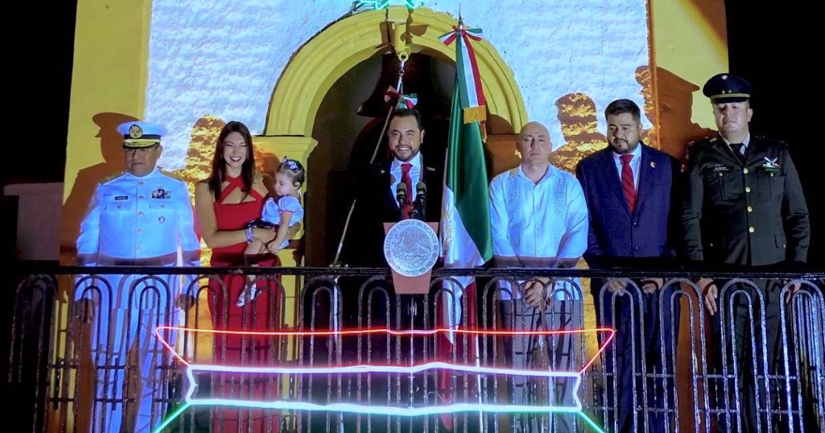 Los Cabos, Baja California Sur.- Cientos de familias celebraron el 215° Aniversario de la Independencia de México, en una ceremonia encabezada por el alcalde de Los Cabos, Christian Agúndez Gómez, quien desde el balcón del Palacio Municipal en San José del Cabo, en compañía de la presidenta honoraria del Sistema DIF Los Cabos Sol Delgado Moreno, sus hijas y autoridades de los 3 niveles de gobierno, recordó a los héroes y heroínas que dieron patria a la nación, al grito de «Viva México».