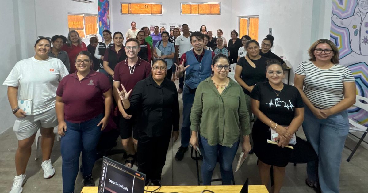 La capacitación está a cargo de Angélica Estefanía González Cruz, usuaria de LSM y con discapacidad auditiva, quien cuenta con amplia experiencia en docencia y formación en lengua de señas. Como apoyo participa el intérprete espejo de LSM, Luis Felipe Ramírez Dávila, hijo oyente de padres sordos (HOPS), facilitando la interacción entre la instructora y los asistentes.