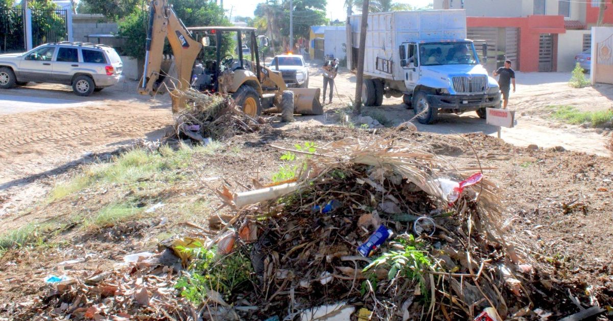 Los Cabos, Baja California Sur.– Con el objetivo de mantener entornos más limpios y seguros para todas las familias, el equipo de Servicios Públicos ha intensificado durante los últimos días las labores de recolección de cacharros, basura acumulada, ramas y desechos en las colonias Santa Rosa INVI, Zacatal y Vista Hermosa en San José del Cabo.