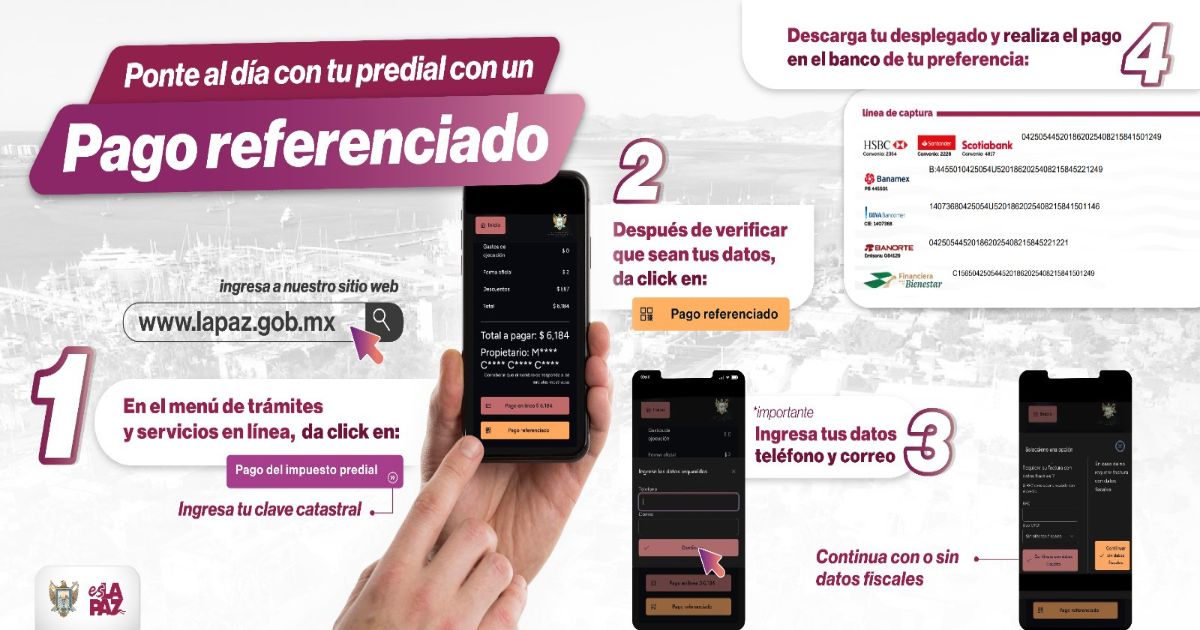 La Paz, Baja California Sur.- El Tesorero Municipal del XVIII Ayuntamiento de La Paz, Jassiel Enríquez Varela, comentó una serie de recomendaciones para que los contribuyentes realicen de manera correcta y sin contratiempos el pago referenciado en línea del impuesto predial, de forma fácil, rápida y segura.