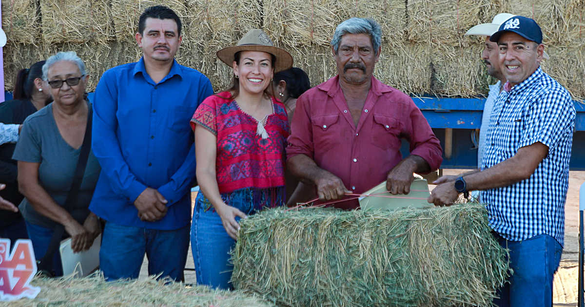 La Paz, Baja California Sur.- La alcaldesa de La Paz, Milena Quiroga Romero, encabezó la entrega de 575 pacas de alfalfa gratuita, beneficiando a 115 productores ganaderos de San Blas y Álvaro Obregón, con una inversión de 86 mil 250 pesos.