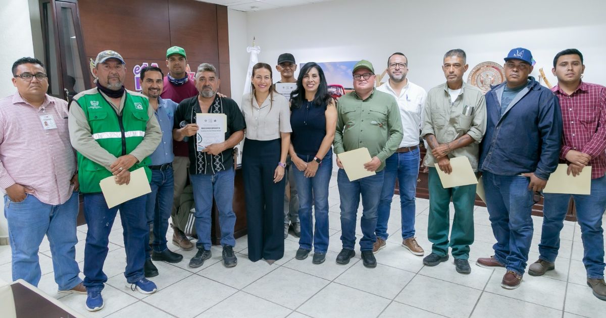 La Paz, Baja California Sur.-En un encuentro encabezado por la presidenta municipal Milena Quiroga Romero, el Ayuntamiento de La Paz y el Organismo Operador Municipal del Sistema de Agua Potable, Alcantarillado y Saneamiento de La Paz (OOMSAPAS), reconocieron a los nueve trabajadores que enfrentaron una contingencia por la crecida de un arroyo en El Carrizal.
