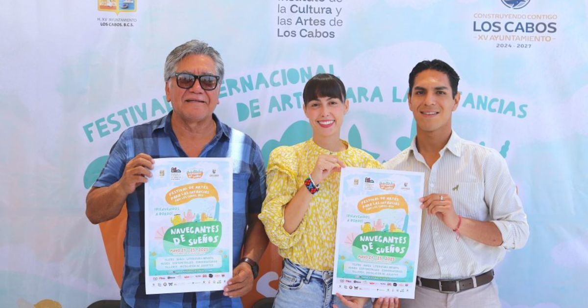 Los Cabos, Baja California Sur.– En conferencia de prensa, la directora general del Instituto de la Cultura y las Artes de Los Cabos, Tanya Covarrubias Martínez, el séptimo regidor, Alí Flores Ramírez, y el coordinador de la Casa de la Cultura “Nieves Trasviña de Ceseña” de Cabo San Lucas, Héctor Guerrero Santiesteban, anunciaron el inicio del Festival Internacional de Artes para las Infancias, FAPI Los Cabos 2025 “Navegantes de Sueños”, que se llevará a cabo del 21 al 25 de mayo.