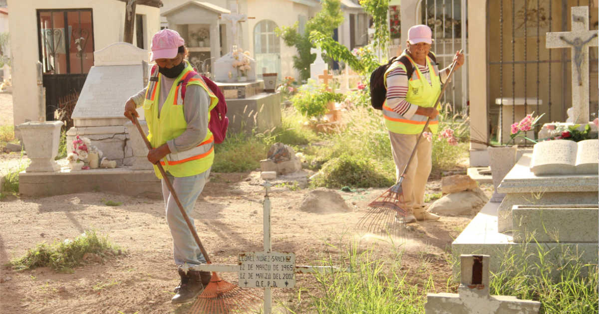 Las acciones contemplan poda, limpieza general y retiro de residuos, con la participación de personal de barrido manual, del programa de empleo temporal y maquinaria pesada para el levantamiento de desechos. Estas labores forman parte de un esquema preventivo para mantener los camposantos en condiciones adecuadas para las visitas.