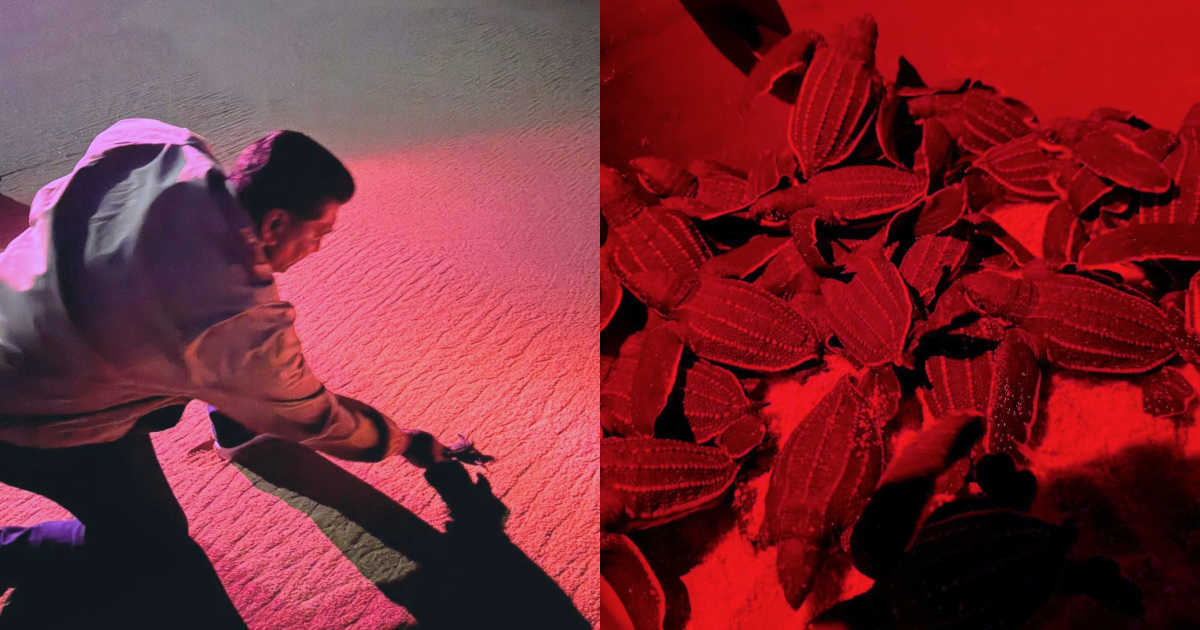 Como parte del protocolo, se empleó luz roja durante la liberación, ya que esta tiene una longitud de onda larga que las tortugas marinas apenas perciben, evitando desorientarlas. A diferencia de la luz blanca o azul, la luz roja no interfiere con su instinto natural de dirigirse hacia el mar, lo que incrementa sus posibilidades de supervivencia.