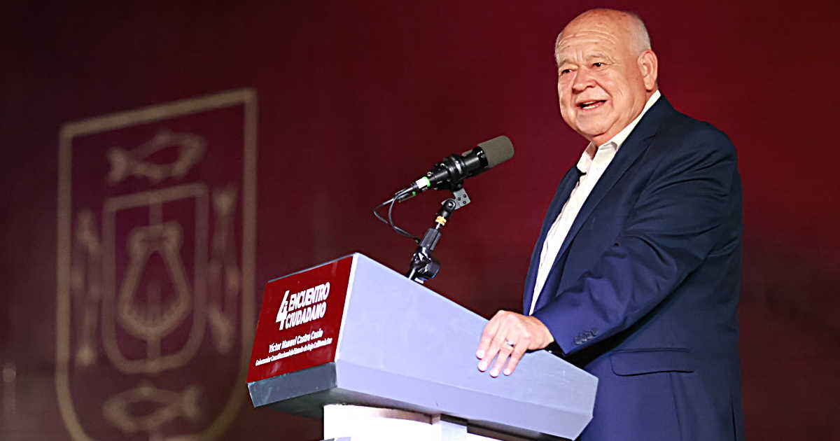 Los Cabos, Baja California Sur. En el Cuarto Encuentro Ciudadano para informar los resultados de su administración, el gobernador Víctor Manuel Castro Cosío reiteró su compromiso de honrar el servicio público bajo los principios de no robar, no mentir y no traicionar al pueblo, gobernando para todas y todos, con énfasis en quienes menos tienen.