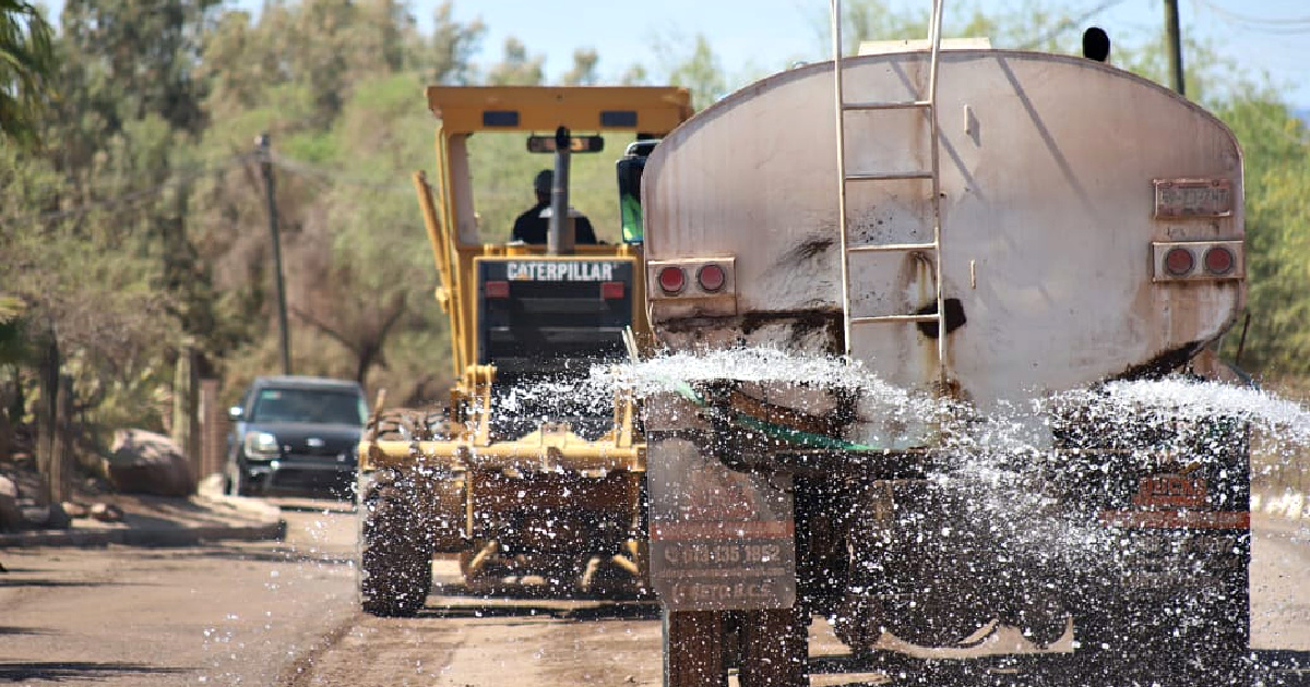 Con el apoyo de maquinaria para nivelación y riego, comentó que el XI Ayuntamiento de Loreto lleva cabo los trabajos de mantenimiento de aproximadamente cuatro kilómetros en esta concurrida vialidad.