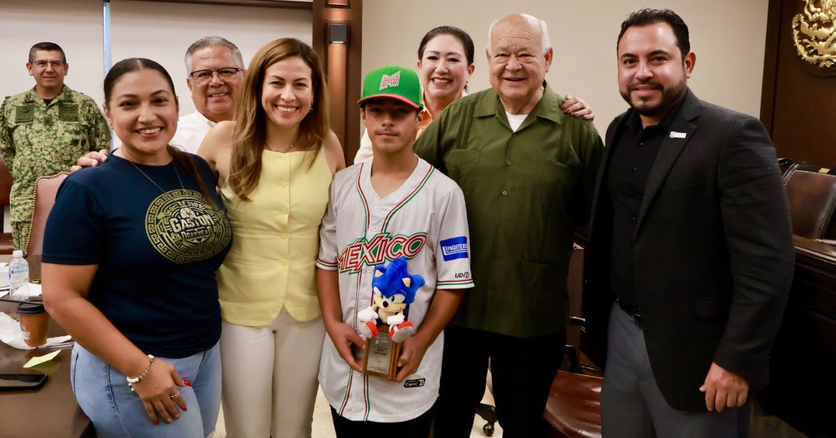 La Paz, Baja California Sur.-La Mesa Interregional de Paz en Baja California Sur, encabezada por el gobernador Víctor Manuel Castro Cosío, recibió en Palacio de Gobierno al joven Gastón Adolfo Gaxiola Hirales, originario de San José del Cabo, quien fue reconocido como el mejor cácher, en el Campeonato Mundial de Béisbol categoría U12, celebrado en Tainan, Taiwán.