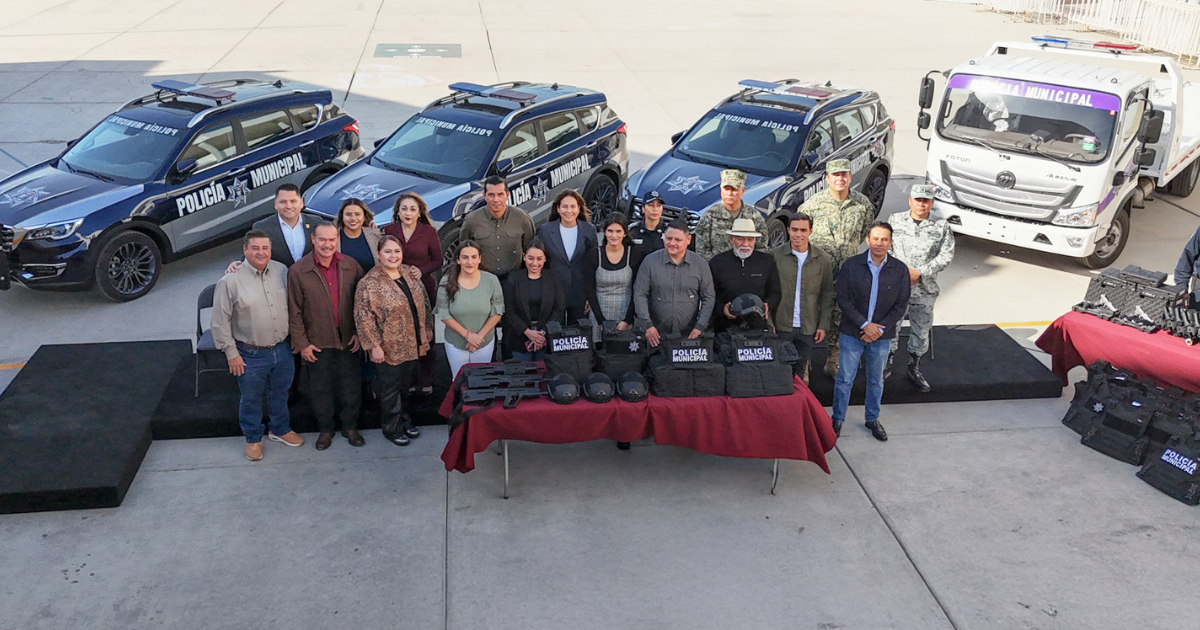 La Paz, Baja California Sur.- La alcaldesa de La Paz, Milena Quiroga Romero, encabezó la entrega de armamento, equipo y vehículos a la Policía Municipal, con el objetivo de mejorar la atención a los llamados de emergencia y reforzar la seguridad en el municipio.