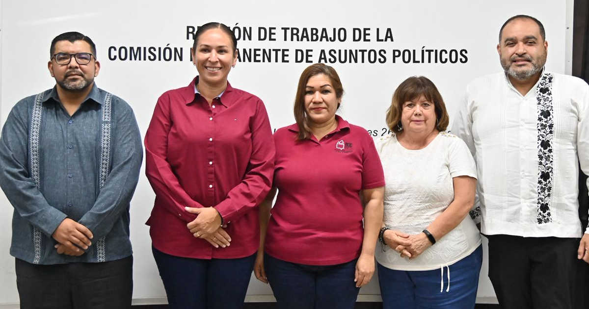 La Paz, Baja California Sur. La Comisión Permanente de Asuntos Políticos, que preside la diputada Alondra Torres, se reunió la tarde de este lunes con consejeros y representantes de partidos políticos para socializar la iniciativa que se está dictaminando respecto al nepotismo electoral y no reelección y escuchar al órgano rector de los procesos electorales como lo es el IEE, así como a los dirigentes de los partidos.