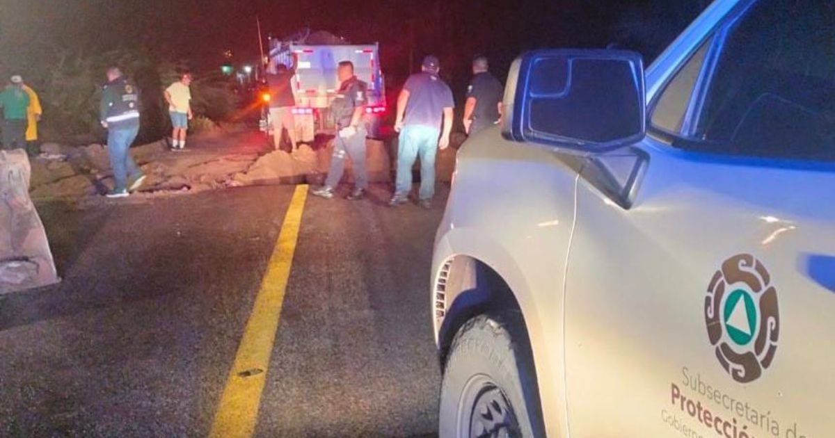 La Paz, Baja California Sur.- La Subsecretaría de Protección Civil del Gobierno del Estado de Baja California Sur informa a la ciudadanía que, tras registrarse un socavón sobre la carretera 19 en el tramo La Paz – Todos Santos, a la altura del kilómetro 50, personal especializado se encuentra realizando los trabajos necesarios para el restablecimiento seguro de la circulación vehicular.