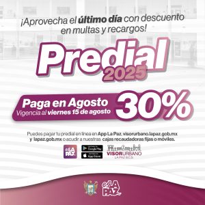 La Paz, Baja California Sur.- Este viernes 15 de agosto finaliza el 30% de descuento en multas y recargos del impuesto predial, posterior a esta fecha el beneficio fiscal disminuirá, así lo informó el tesorero municipal del XVIII Ayuntamiento de La Paz, Jassiel Enríquez Varela.